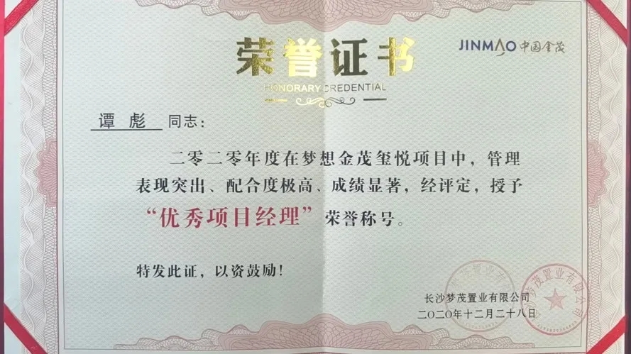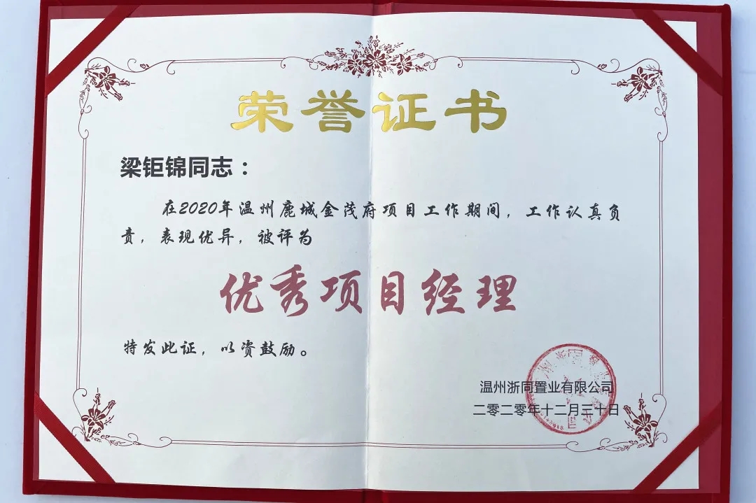 梁钜锦 温州鹿城金茂府优秀项目经理